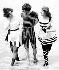 Il "senso del pudore" era molto rigido e mostrare parti del corpo nude era riprovevole sia per le donne, sia per gli uomini. Anche i costumi maschili prevedevano tute intere o pantaloncini corti con canotta a righe.