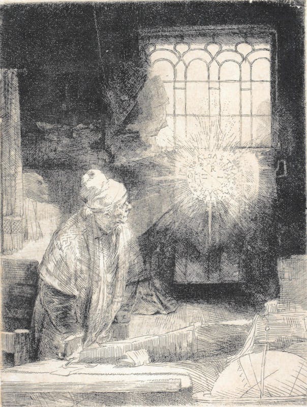 Rembrandt, “Un erudito nel suo studio”, acquaforte, 1652 circa, Le Gallerie degli Uffizi, Firenze